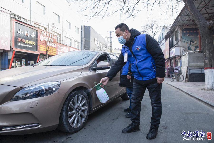 工作人員對過往車輛進(jìn)行消毒。中國雄安官網(wǎng)記者牛思佳 攝