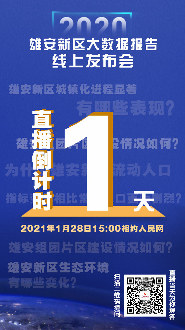 人民網(wǎng)雄安1月27日電 明天,將有關(guān)于雄安的重要消息發(fā)布?!拔磥?lái)之城 拔節(jié)生長(zhǎng):大數(shù)據(jù)見(jiàn)證雄安之變”雄安新區(qū)2020年大數(shù)據(jù)報(bào)告線上發(fā)布會(huì)定于28日下午3點(diǎn),在人民網(wǎng)演播廳舉行。發(fā)布會(huì)上,百度商業(yè)智能實(shí)驗(yàn)室專家將重點(diǎn)從生態(tài)環(huán)境變化、基建成果、產(chǎn)業(yè)發(fā)展、人口變化和熱門關(guān)注度等角度對(duì)雄安新區(qū)2020年大數(shù)據(jù)報(bào)告進(jìn)行解讀,用數(shù)據(jù)幫助你客觀、全面了解雄安新區(qū)過(guò)去一年的建設(shè)發(fā)展內(nèi)容和成果。屆時(shí),人民網(wǎng)將全程直播,敬請(qǐng)關(guān)注!