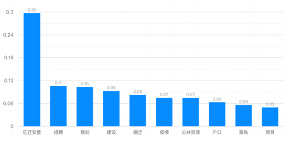 圖為雄安新區(qū)常住人口的熱門關(guān)注分布(2019年10月—2020年10月)。
