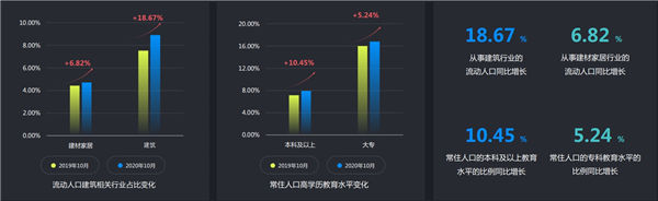 在學(xué)歷方面,雄安新區(qū)流動(dòng)人口的高學(xué)歷占比高于常住人口。與此同時(shí),常住人口的高學(xué)歷比例增加也較為明顯,過(guò)去一年雄安常住人口本科和大專比例同比分別增長(zhǎng)了10.45%和5.24%。