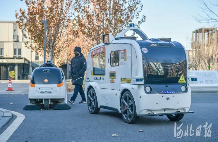 雄安市民服務(wù)中心,無人零售車正在運(yùn)行。海綿綠地、智能路燈、生態(tài)停車場、人臉識別的無人超市、菜鳥無人物流車……徜徉在雄安市民服務(wù)中心,各種創(chuàng)新元素共同搭建起“智慧城市”的雛形。河北日報資料片 記者趙杰 攝