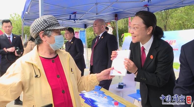 活動(dòng)現(xiàn)場(chǎng),工作人員向新區(qū)群眾普及知識(shí)產(chǎn)權(quán)常識(shí)。中國(guó)雄安官網(wǎng)記者毛鶴然 攝