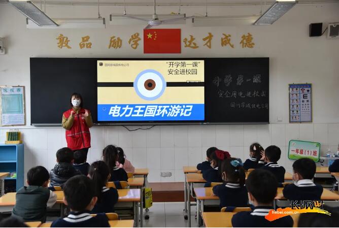 共產(chǎn)黨員服務(wù)隊(duì)隊(duì)員為小學(xué)生們講“開學(xué)第一課”。冀洋 圖