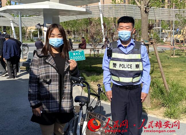 人民網(wǎng)雄安5月1日電 (劉師豪)今天上午,在雄安新區(qū)容東片區(qū)明珠園小區(qū)東側(cè)的電動自行車登記服務點,王志偉領(lǐng)到了屬于自己的號牌。這也是該服務點發(fā)放的第一張電動自行車號牌。