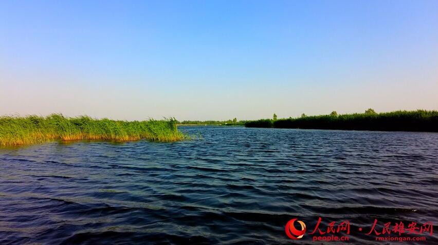 清澈的白洋淀與蘆葦,形成一幅藍(lán)綠交織的美好畫(huà)卷。高騰攝