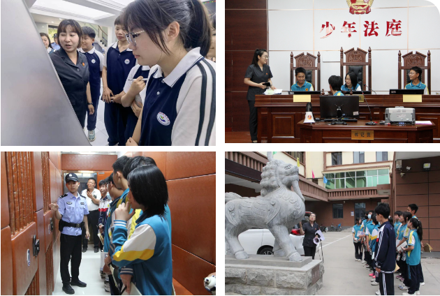 活動(dòng)分為兩個(gè)部分。首先由干警帶領(lǐng)同學(xué)們參觀法院的基本設(shè)施。同學(xué)們依次體驗(yàn)了訴訟服務(wù)中心的“一站式”訴訟服務(wù),深入感受“未成年人心理疏導(dǎo)室”和“少年法庭”營(yíng)造的溫馨、和諧的審判環(huán)境,認(rèn)真觀察了羈押室、囚車以及各種警用裝備的精妙設(shè)計(jì),“沉浸式”體驗(yàn)了法院的工作氛圍。