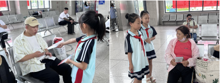 小學(xué)生們進(jìn)入候車大廳向旅客們宣講了反邪教、防范毒品、電信網(wǎng)絡(luò)詐騙等法律知識(shí),營(yíng)造了濃厚的法治宣傳氛圍。