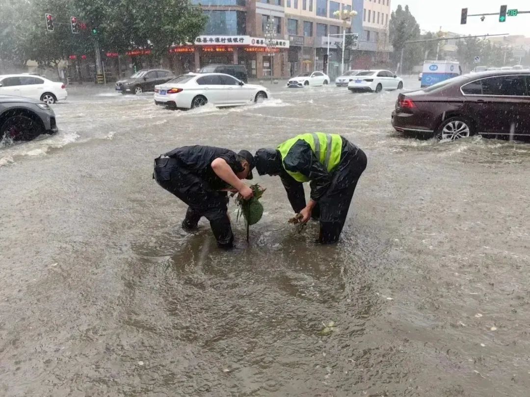暴雨中,執(zhí)勤民輔警縱然全身濕透,依然堅(jiān)守在各自崗位,及時(shí)排查積水隱患、推移拋錨汽車、疏導(dǎo)分流車輛、幫助受困群眾。在積水嚴(yán)重位置安排專人執(zhí)勤,發(fā)現(xiàn)積水影響交通通行的,實(shí)施交通管制,提醒過(guò)往車輛安全駕駛,確保人民群眾生命財(cái)產(chǎn)安全。