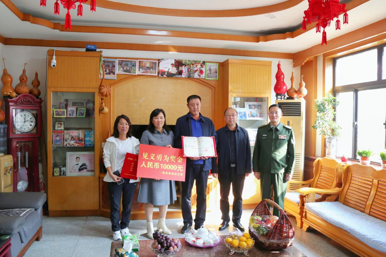 日前,在海軍某部服役的河北省雄安新區(qū)雄縣籍現(xiàn)役軍人趙磊,被家鄉(xiāng)雄縣人民政府授予“見義勇為先進(jìn)個人”榮譽(yù)稱號。雄縣相關(guān)領(lǐng)導(dǎo)專程到“見義勇為先進(jìn)個人”趙磊家中走訪慰問,為趙磊親屬頒發(fā)了證書和獎金。