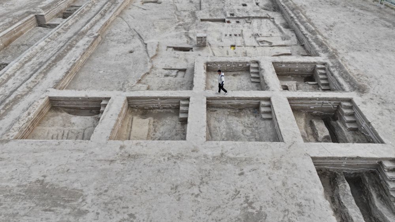 這是雄安新區(qū)南陽遺址考古發(fā)掘現(xiàn)場(3月26日攝,無人機(jī)照片)。新華社記者牟宇 攝