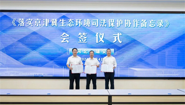 活動中,三家法院共同簽署《落實京津冀生態(tài)環(huán)境司法保護協(xié)作備忘錄》,從聯(lián)學共建、資源共享、審執(zhí)質(zhì)效、多元共治、聯(lián)合調(diào)研、專業(yè)化隊伍建設(shè)以及環(huán)保法治宣傳等方面建立健全了更加緊密高效的京津冀法院環(huán)境資源審判工作協(xié)調(diào)聯(lián)動機制。