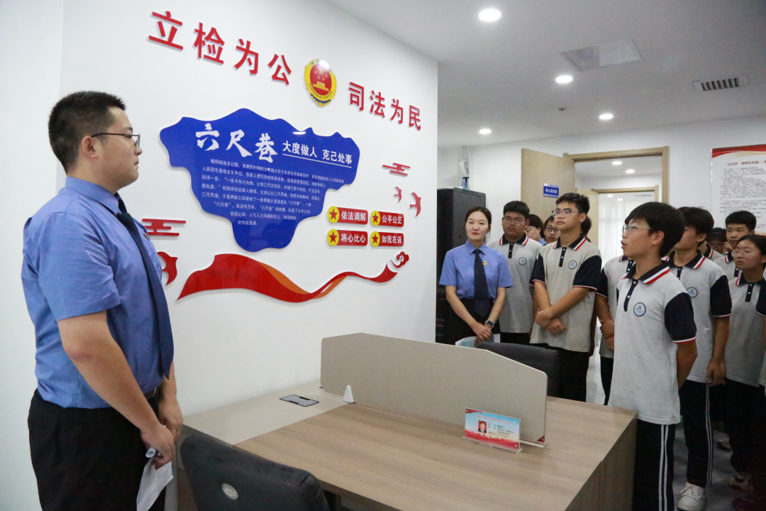 “同學們,高鐵樞紐片區(qū)檢察服務(wù)中心以服務(wù)征遷群眾為宗旨,它是集家庭教育指導、心理疏導、回訪幫教、矛盾調(diào)處、法治宣傳等為一體的綜合服務(wù)中心……現(xiàn)在大家看到的是我們專門為未成年人設(shè)置的家庭教育指導室和心理疏導室,在這里可以為未成年人及親屬提供全方位的家庭教育指導和心理疏導、心理測評、行為矯正等法律服務(wù)”。在干警講解下,學生們了解了檢察服務(wù)中心的功能作用,感受到檢察機關(guān)做實未成年人保護工作的司法溫度。
