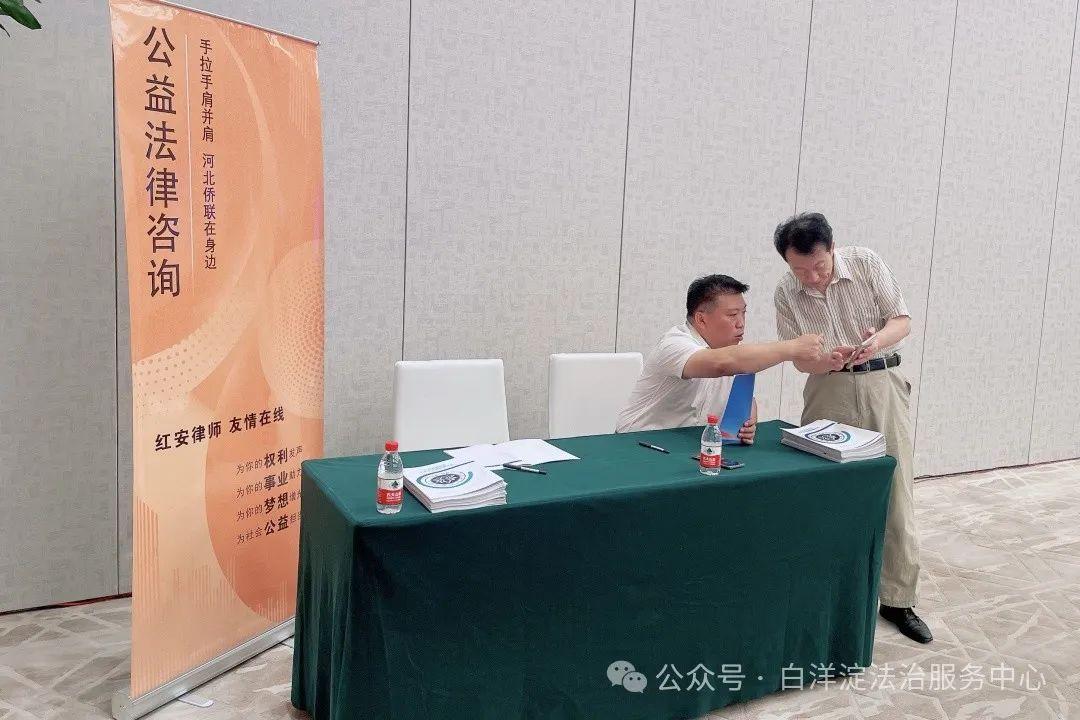 8月30日,“牽手京津冀 僑智匯雄安”百名僑界博士雄安行活動(dòng)在雄安國(guó)際酒店舉行。白洋淀法治服務(wù)中心理事白長(zhǎng)青、秘書(shū)長(zhǎng)花鑫現(xiàn)場(chǎng)提供公益法律咨詢服務(wù)。
