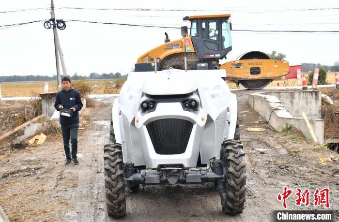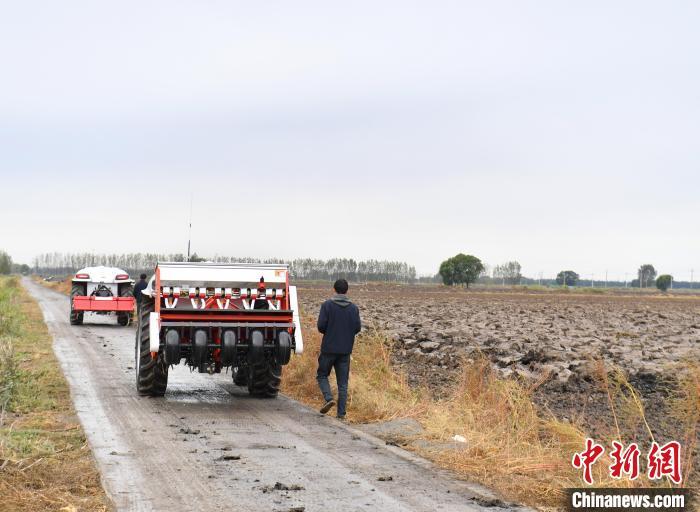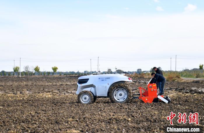 10月22日,河北雄安新區(qū)安新縣端村鎮(zhèn)關(guān)城二村一農(nóng)田內(nèi),“鴻鵠T70”電動(dòng)智能拖拉機(jī)準(zhǔn)備進(jìn)行秋播作業(yè)。中新社記者 韓冰 攝