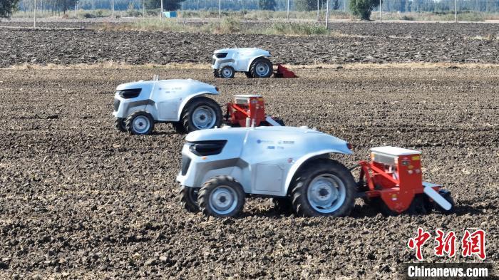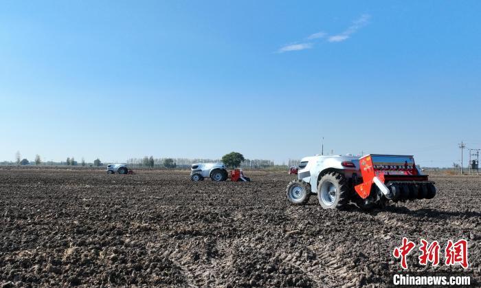 10月22日,河北雄安新區(qū)安新縣端村鎮(zhèn)關(guān)城二村一農(nóng)田內(nèi),幾臺(tái)“鴻鵠T70”電動(dòng)智能拖拉機(jī)正在進(jìn)行秋播作業(yè)。據(jù)了解,今年雄安新區(qū)公共服務(wù)局通過實(shí)施“雄安新區(qū)農(nóng)業(yè)全產(chǎn)業(yè)鏈數(shù)字化轉(zhuǎn)型示范應(yīng)用場(chǎng)景項(xiàng)目”,重點(diǎn)打造“數(shù)字決策+無人農(nóng)機(jī)”的無人農(nóng)場(chǎng)示范場(chǎng)景,依托國(guó)家數(shù)字農(nóng)業(yè)區(qū)域(京津冀)創(chuàng)新分中心與中國(guó)科學(xué)院雄安創(chuàng)新研究院(籌)第三代新能源智能農(nóng)機(jī)技術(shù),在雄安新區(qū)實(shí)施5000畝農(nóng)田“耕、種、管、收”全鏈條環(huán)節(jié)無人化示范作業(yè)。