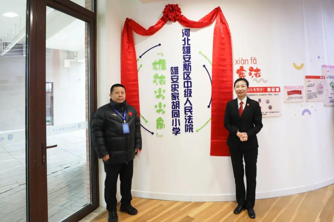 為充分發(fā)揮法治副校長職能延伸作用,做好新區(qū)青少年普法宣傳教育工作,切實(shí)增強(qiáng)新區(qū)中小學(xué)生法律意識(shí)和法治觀念,12月12日,雄安中院與雄安史家胡同小學(xué)聯(lián)合開展“雄法尖尖角”法治角揭牌活動(dòng)。雄安中院黨組副書記、副院長李靜靜、雄安史家胡同小學(xué)校長張欣欣、校長助理化國輝出席活動(dòng)并致辭,雄安中院少審?fù)ジ删?、雄安史家胡同小學(xué)師生代表參加活動(dòng)。