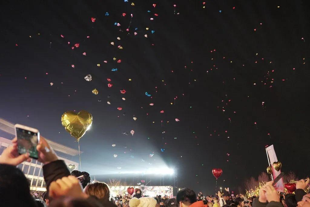 2024年12月31日晚,“未來奇妙夜”跨年活動現(xiàn)場,游人放飛寫滿新年心愿的氣球。河北日報記者李暢 攝