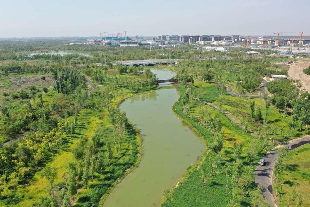 河北雄安新區(qū)啟動區(qū)中央綠谷及東部溪谷生態(tài)廊道一角(2023年7月19日攝)。新華社記者 朱旭東 攝