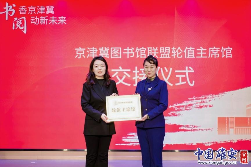 首都圖書(shū)館和天津圖書(shū)館進(jìn)行京津冀圖書(shū)館聯(lián)盟輪值主席館交接。中國(guó)雄安官網(wǎng)發(fā)