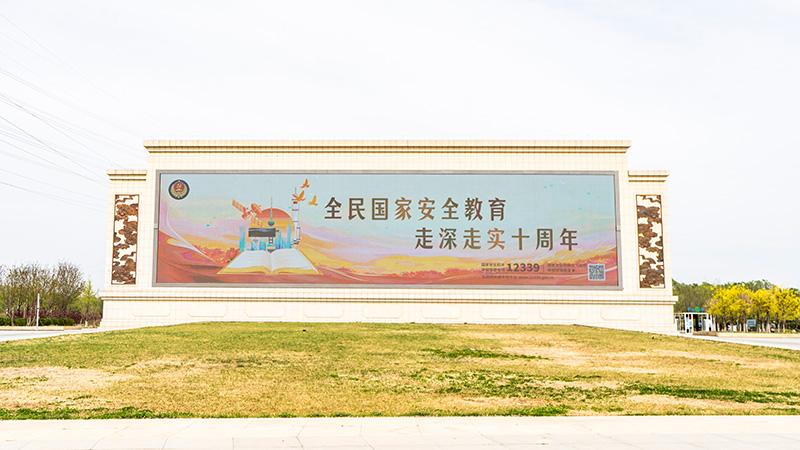 雄安新區(qū)三賢廣場(chǎng)大屏循環(huán)播放全民國(guó)家安全教育日宣傳海報(bào)、視頻。吳玉婷攝