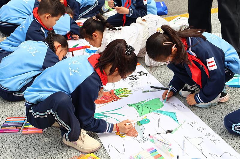 安新縣雁翎小學(xué)以“童心繪國(guó)安 長(zhǎng)卷載山河”為主題,開(kāi)展十米長(zhǎng)卷集體創(chuàng)作活動(dòng)。雄安新區(qū)教育局供圖