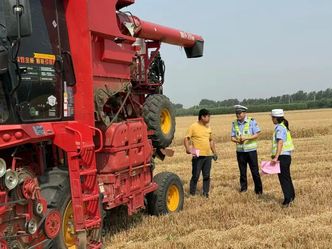 “農(nóng)忙時(shí)節(jié)大家都很辛苦,但千萬(wàn)不能忽視交通安全?!睆堁梢贿呥f上印著一盔一帶、嚴(yán)禁酒駕醉駕以及電動(dòng)三四輪車(chē)安全提示的宣傳單頁(yè),一邊送上溫馨提醒,“天氣炎熱容易疲勞,開(kāi)車(chē)前要保證充足的睡眠,不要疲勞駕駛。另外,收割機(jī)等農(nóng)機(jī)具在作業(yè)前要仔細(xì)檢查,確保車(chē)輛的制動(dòng)、燈光等安全部件性能良好,可不能開(kāi)帶病車(chē)上路。”