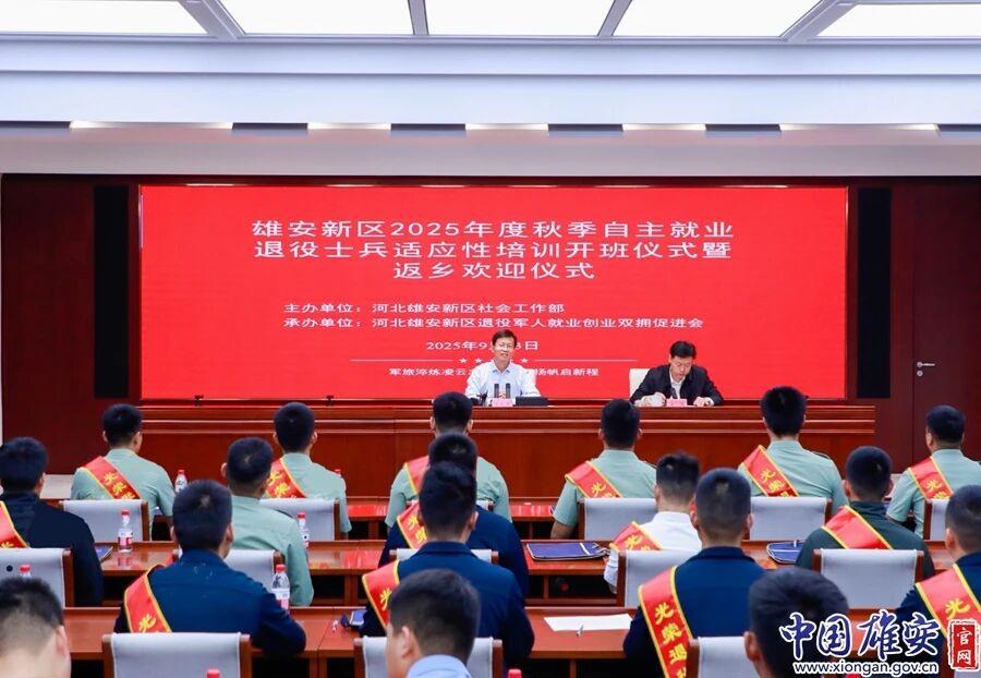 中國(guó)雄安官網(wǎng)9月24日電(王曉娟)為幫助退役軍人增強(qiáng)社會(huì)適應(yīng)性,更好完成角色轉(zhuǎn)變,9月23日,雄安新區(qū)舉行2025年度秋季自主就業(yè)退役士兵歡迎儀式暨適應(yīng)性培訓(xùn)開班儀式。河北省委雄安辦副主任,雄安新區(qū)黨工委委員、社會(huì)工作部部長(zhǎng)王紀(jì)平出席歡迎儀式并致辭,2025年秋季返鄉(xiāng)全體自主就業(yè)退役士兵參加。