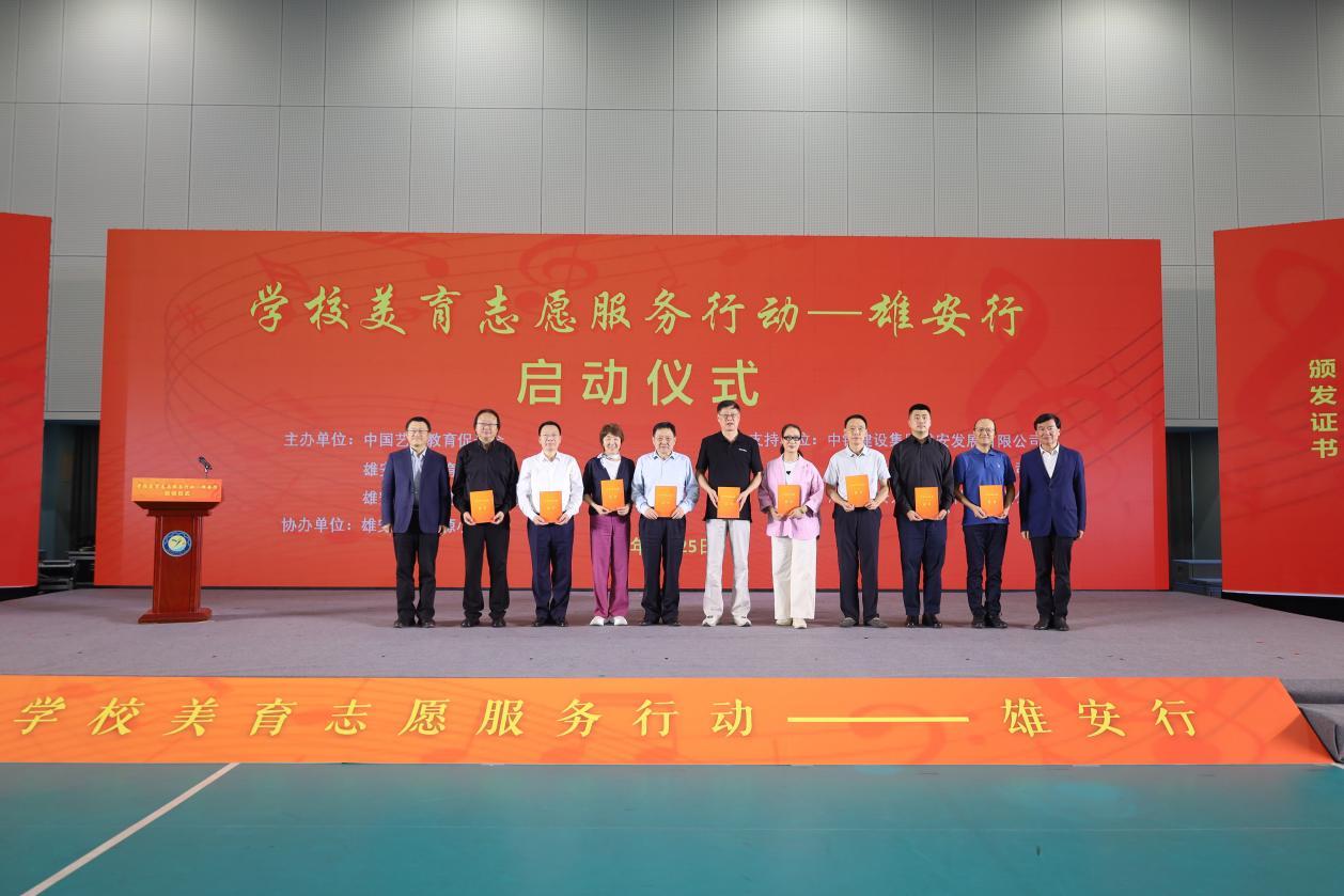 啟動(dòng)儀式上,中國藝術(shù)教育促進(jìn)會(huì)以及雄安新區(qū)教育發(fā)展基金會(huì)相關(guān)負(fù)責(zé)人為首批志愿服務(wù)專家代表、愛心企業(yè)頒發(fā)了志愿證書。國家一級(jí)演員、程派青衣李海燕作為志愿者代表發(fā)出倡議,呼吁更多藝術(shù)家、美育專家和優(yōu)秀教師加入志愿服務(wù)行列。