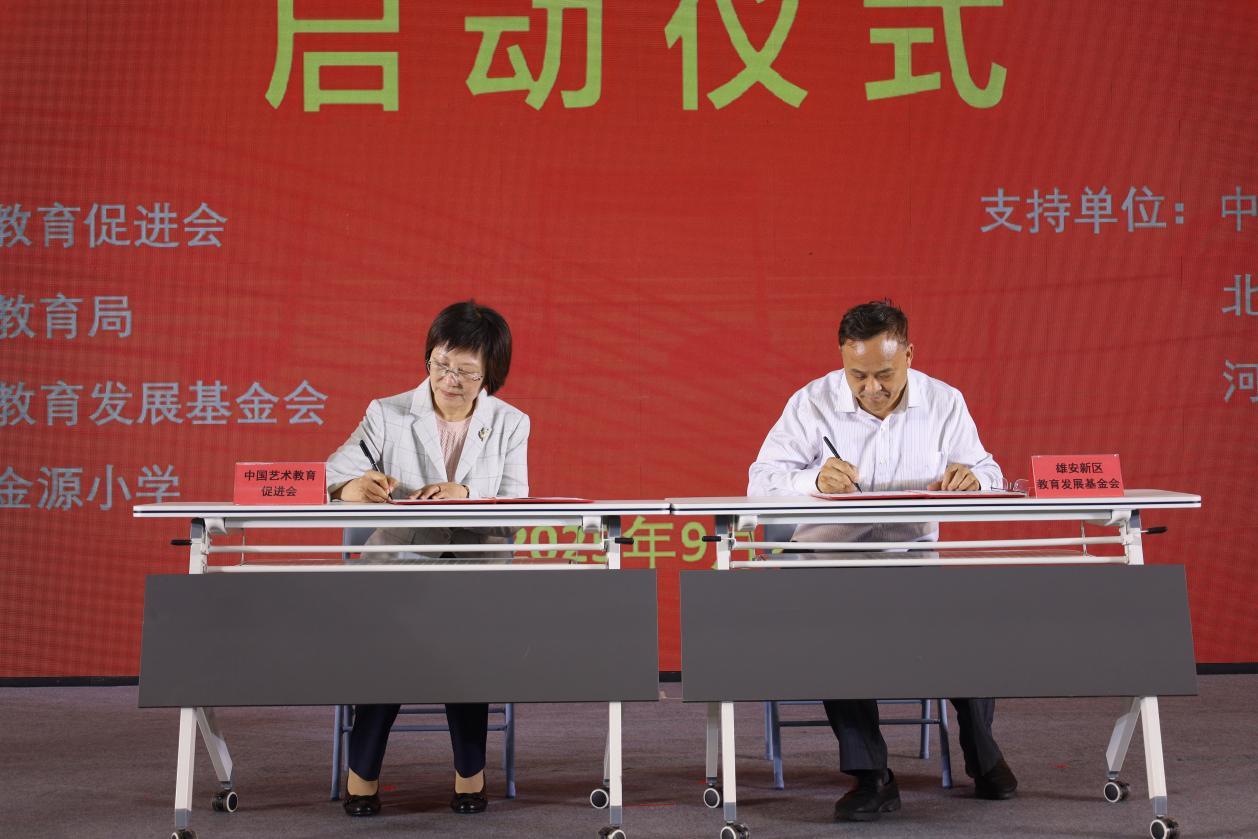 人民網(wǎng)雄安9月26日電 (記者宋燁文)9月25日,由中國藝術(shù)教育促進(jìn)會(huì)、雄安新區(qū)教育局、雄安新區(qū)教育發(fā)展基金會(huì)聯(lián)合主辦的“學(xué)校美育志愿服務(wù)行動(dòng)——雄安行”項(xiàng)目啟動(dòng)儀式在雄安容和金源小學(xué)舉行,現(xiàn)場(chǎng),中國藝術(shù)教育促進(jìn)會(huì)與雄安新區(qū)教育發(fā)展基金會(huì)簽訂合作框架協(xié)議。