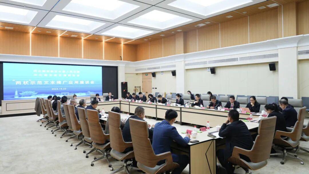 雄安新區(qū)中院會同新區(qū)律協(xié)召開“兩狀”示范文本推廣應(yīng)用座談會。
