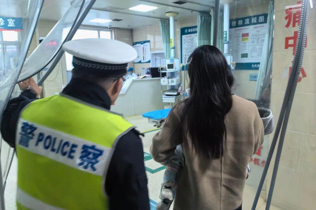 民警護(hù)送孩童就醫(yī)。