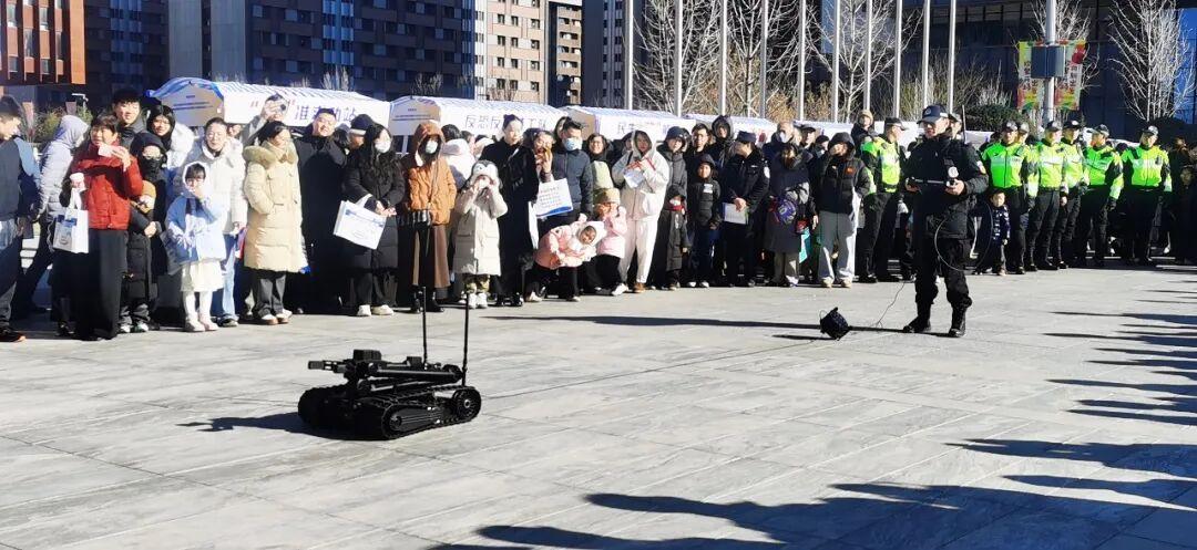 活動現(xiàn)場最令人屏息的,當(dāng)屬危險爆炸物排除演示。排爆民警身著厚重裝備,面對“無聲威脅”沉著冷靜,按照嚴(yán)謹(jǐn)?shù)牟僮髁鞒棠M處置疑似爆炸物,排爆機(jī)器人精準(zhǔn)完成可疑物探測、勘察、抓取轉(zhuǎn)移等一系列動作,每一個細(xì)節(jié)都彰顯著專業(yè)與勇氣,詮釋了“用生命守護(hù)生命”的責(zé)任擔(dān)當(dāng)。