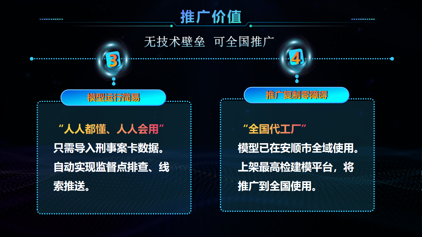 因數據來源方便、推送線索精準度達65%、監(jiān)督成效顯著,該模型建成兩個月內,已從全省164個模型中脫穎而出,成功上架最高檢建模平臺,將在全國范圍內推廣應用。