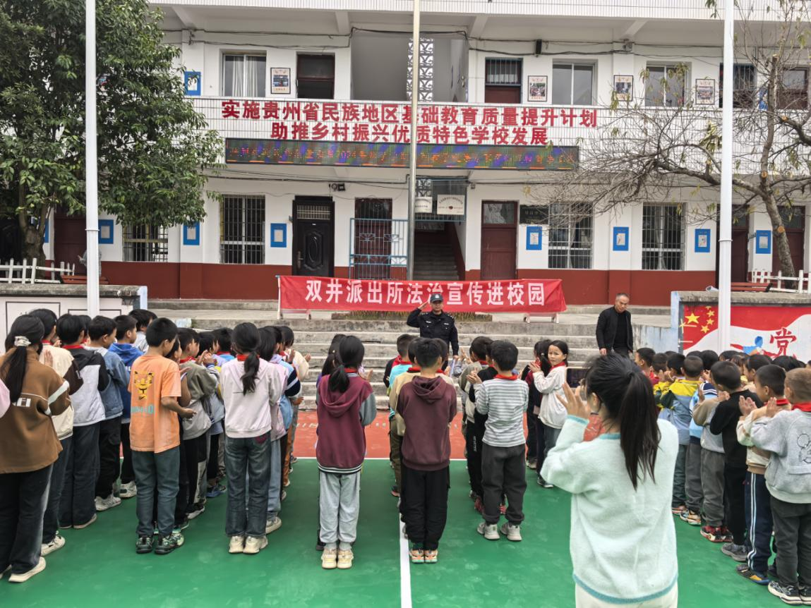為幫助青少年樹立尊法學(xué)法守法用法的意識,增強青少年的自我保護能力,近日,貴州省黔東南州施秉縣公安局雙井派出所組織警力到轄區(qū)學(xué)校開展法治宣傳進校園活動。