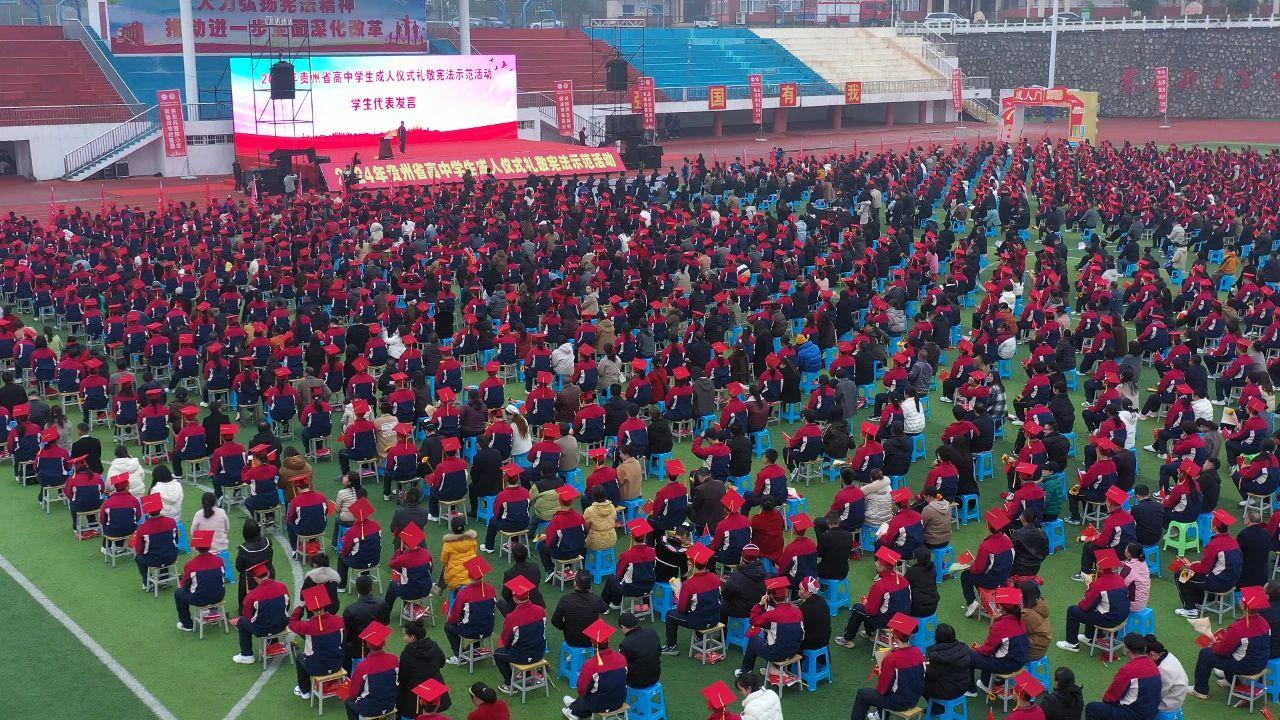 2024年12月4日是第十一個國家憲法日,貴州省教育廳、貴州省司法廳、共青團(tuán)省委在黔東南州凱里市第一中學(xué),舉辦主題為“弘揚(yáng)憲法精神、領(lǐng)航青春成長”的貴州省高中學(xué)生成人儀式禮敬憲法示范活動。
