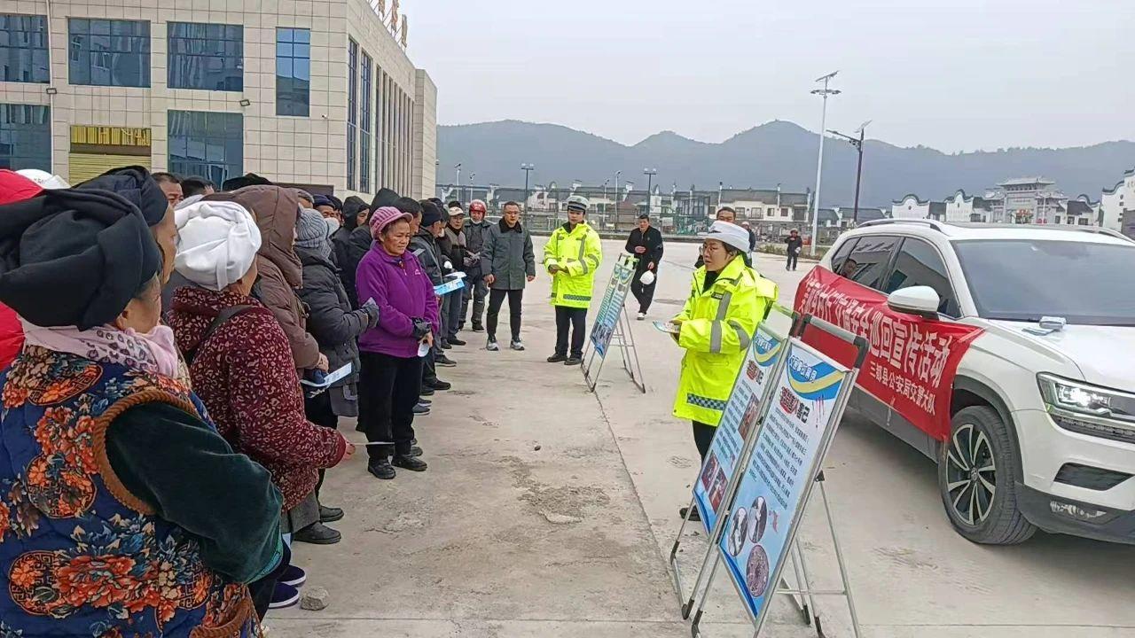 活動中,宣傳民警針對冬季群眾返鄉(xiāng)、走親訪友等出行頻率增多的情況,結合轄區(qū)農(nóng)村道路交通實際,圍繞“文明交通 攜手共創(chuàng)”“一盔一帶”等主題,向群眾普及道路交通安全知識和冬季出行注意事項,讓群眾在家門口就能學習交通安全知識。