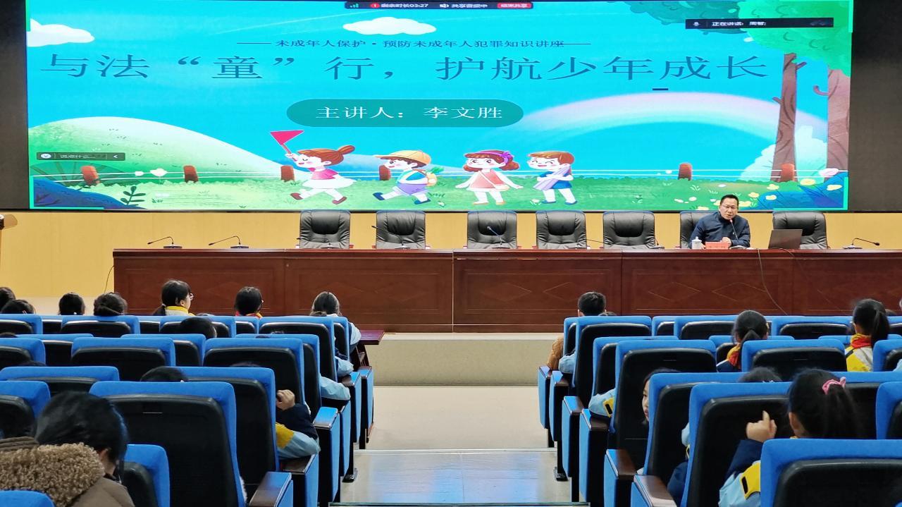 法治副校長李文勝以“與法‘童’行,護航少年成長”為主題,結(jié)合小學(xué)生的認知特點,重點講解了《中華人民共和國未成年人保護法》《中華人民共和國預(yù)防未成年人犯罪法》,深入剖析未成年人犯罪的常見類型及其背后的原因,并向?qū)W生們闡述了犯罪行為對個人、家庭和社會造成的嚴重危害。