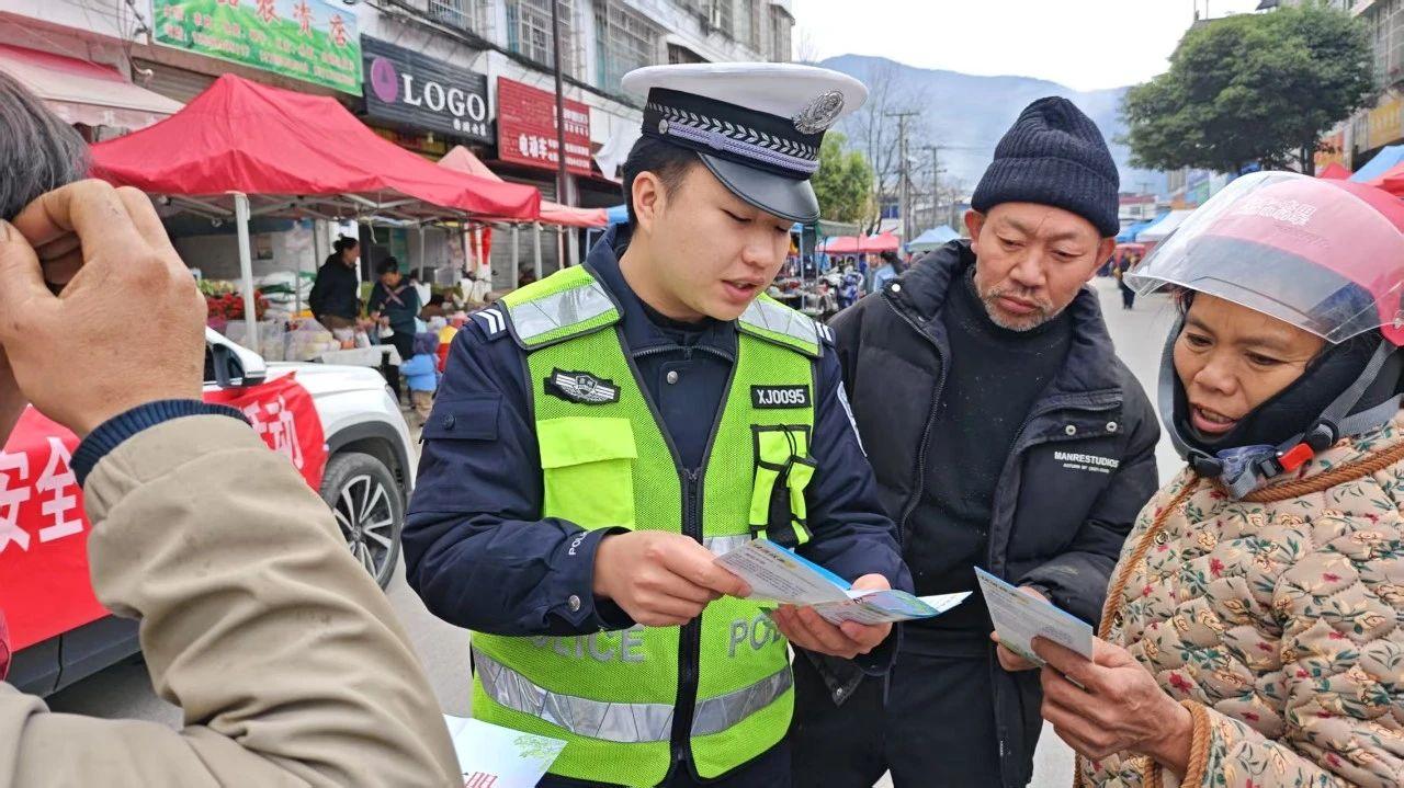 在農(nóng)村趕集日,宣傳民警來到集市中心,設(shè)置宣傳點(diǎn),擺放交通安全宣傳展板,并向群眾發(fā)放宣傳手冊(cè)。與此同時(shí),為助力群眾合法合規(guī)上路行駛,民輔警還現(xiàn)場詳細(xì)講解摩托車上牌辦證的規(guī)范流程,引導(dǎo)群眾主動(dòng)遵守交通法規(guī)。