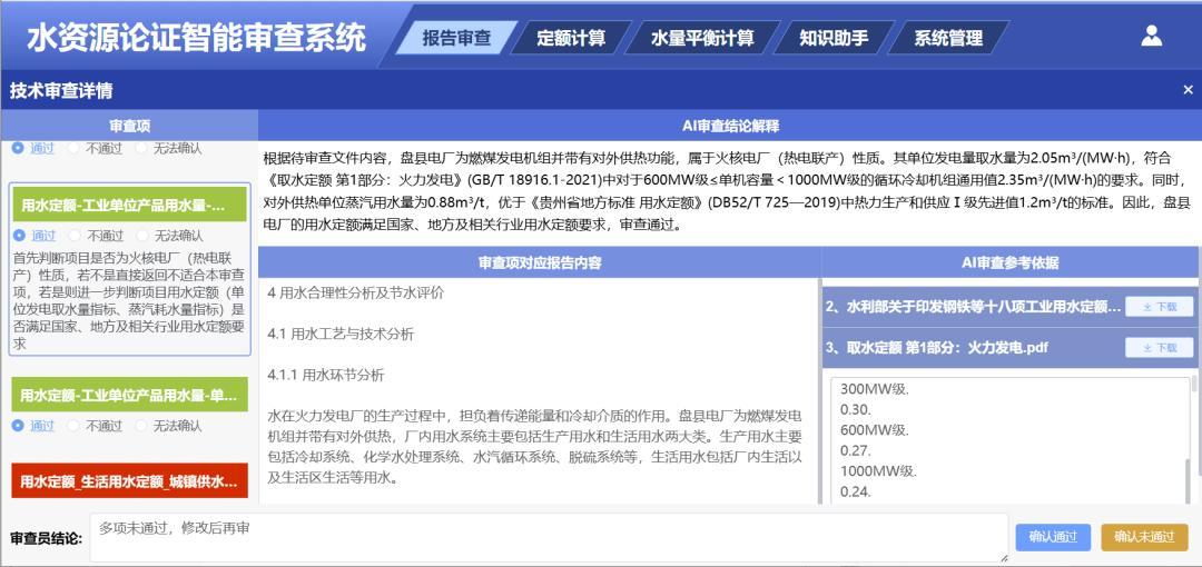 水資源論證報(bào)告智能審查系統(tǒng)的應(yīng)用,可以避免出現(xiàn)因報(bào)告書(shū)質(zhì)量差而開(kāi)展專(zhuān)家審查的不利局面,可以大大提高審查效率,同時(shí)也提升了審查的規(guī)范性、公正性和科學(xué)性,提高水利新質(zhì)生產(chǎn)力。