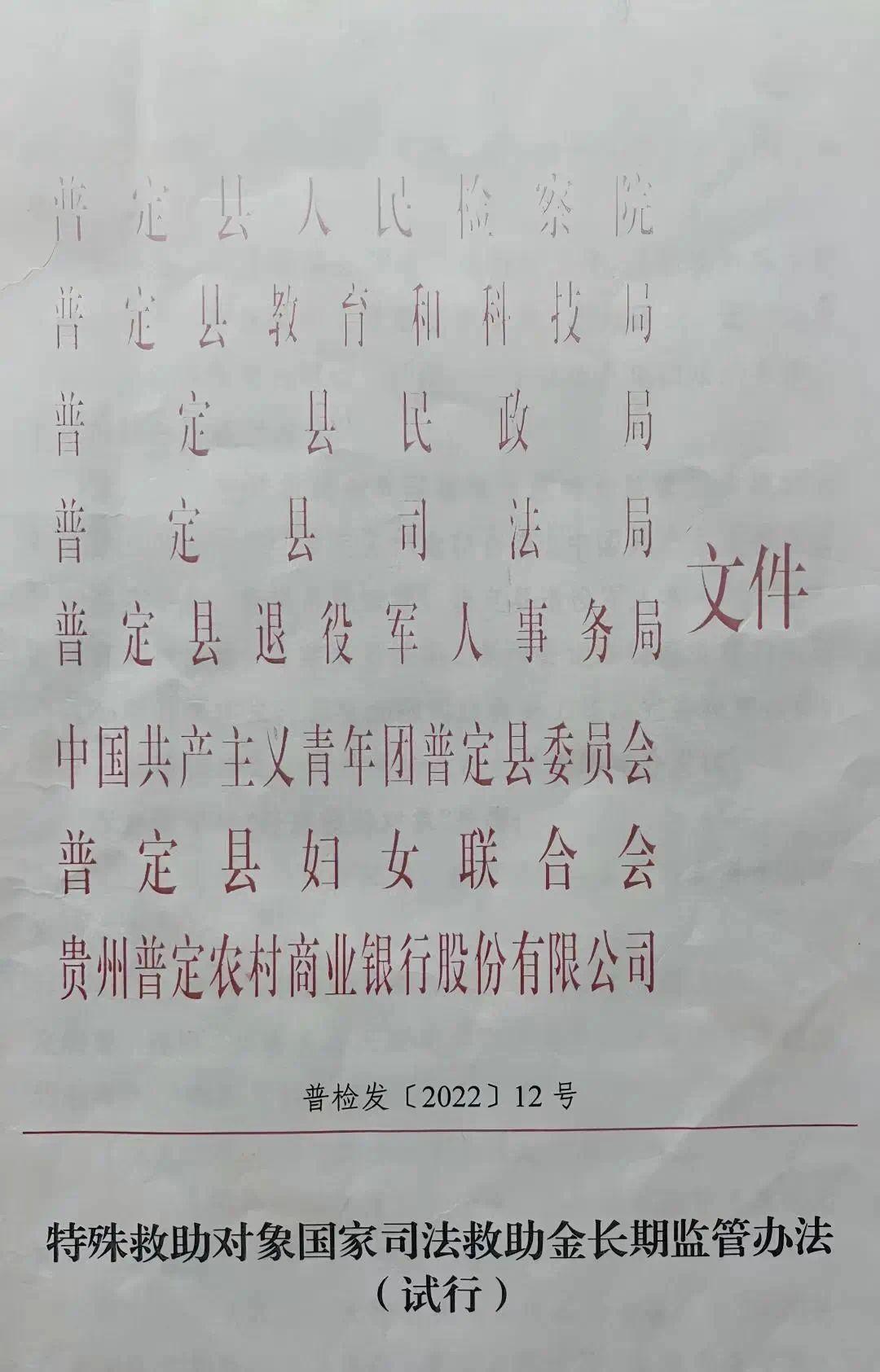 為堅(jiān)持和發(fā)展新時(shí)代“楓橋經(jīng)驗(yàn)”,進(jìn)一步暢通和規(guī)范群眾訴求表達(dá)、利益協(xié)調(diào)、權(quán)益保障通道,貴州省安順市普定縣人民檢察院創(chuàng)新推出的《特殊救助對(duì)象國(guó)家司法救助金長(zhǎng)期監(jiān)管辦法》,獲最高人民檢察院全國(guó)推廣,成為司法救助領(lǐng)域的創(chuàng)新典范。該機(jī)制通過(guò)多部門(mén)協(xié)同,構(gòu)建“資金監(jiān)管+跟蹤幫扶”模式,切實(shí)為困境家庭筑牢法治保障,讓司法救助真正成為溫暖民心的長(zhǎng)效工程。