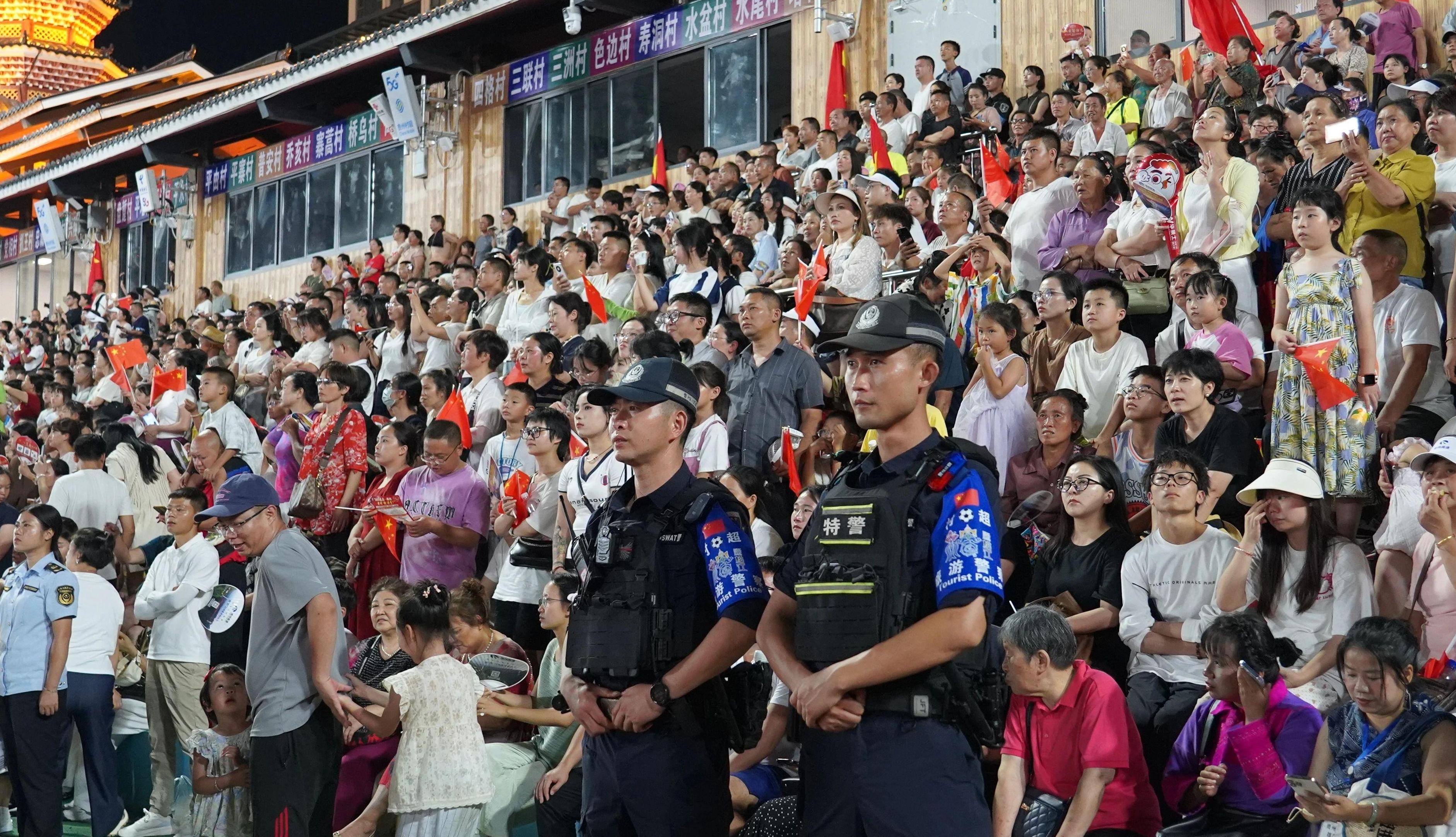 為確保賽事活動成功舉辦,省、州、縣三級公安機(jī)關(guān)建立“村超”安全保障服務(wù)工作協(xié)調(diào)機(jī)制,每日跟蹤調(diào)度各項安保工作,累計投入安保力量2700余人,安裝調(diào)試各類安檢設(shè)備657臺(套),會同市場監(jiān)管、綜合執(zhí)法、消防等部門對賽場及周邊進(jìn)行安全巡查,強(qiáng)化道路秩序管理和社會治安巡邏防控,為各項賽事和文藝演出活動的順利舉行,營造了平安有序的社會治安環(huán)境。