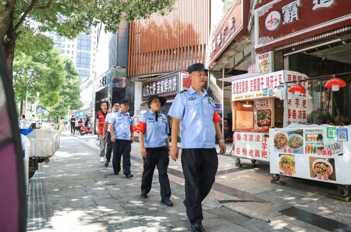夜幕降臨,數(shù)公里外的紅街夜市人聲鼎沸,金紅社區(qū)“紅袖標志愿巡邏隊”隊員王成正穿梭于攤位間,仔細檢查商戶的煤氣罐閥門和電路線路。“紅街夜市有600余家商戶,夜間食客多,醉酒糾紛、噪音擾民、用電用氣安全都是重點?!弊鳛閰R昌物業(yè)秩序隊長、巡邏隊“元老”,王成對夜市安全隱患了如指掌。