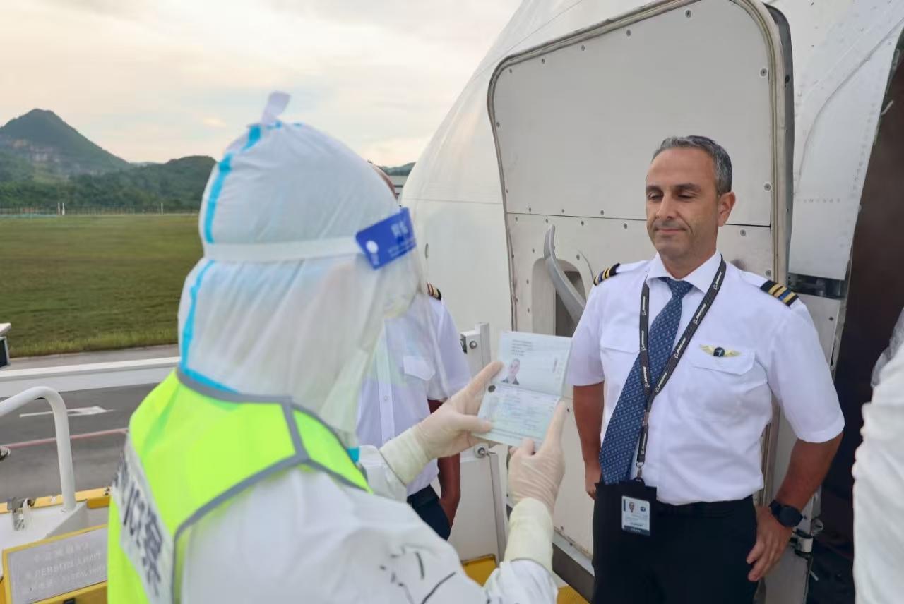 貨機剛落地,專項查驗小組便立即攜帶查驗設備快速抵達指定停機位,在嚴格遵守查驗流程的前提下,迅速開展機組人員人證對照,同時進行貨機清艙檢查等系列工作,僅用12分鐘便辦結邊防檢查全部通關流程,為后續(xù)檢疫消殺、轉運工作節(jié)省寶貴時間,最大限度降低了種豬在途應激風險。