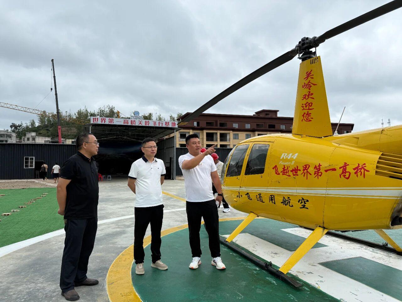 隨著花江峽谷大橋通車進(jìn)入倒計時,貴州省安順市關(guān)嶺自治縣依托“世界第一橋”的獨特IP,同步布局直升機(jī)觀光與飛艇觀光,以“橋+空”模式打造橋旅融合新標(biāo)桿。為服務(wù)保障航空產(chǎn)業(yè)城建設(shè)起步穩(wěn)、發(fā)展實,近日,關(guān)嶺自治縣人民檢察院黨組書記、檢察長陳治與黨組副書記、常務(wù)副檢察長程端貴到世界第一高橋關(guān)嶺飛行基地和飛艇基地進(jìn)行走訪,將檢察職能與地方發(fā)展需求深度對接,為“空中觀光+橋梁旅游”的新業(yè)態(tài)筑牢法治屏障。