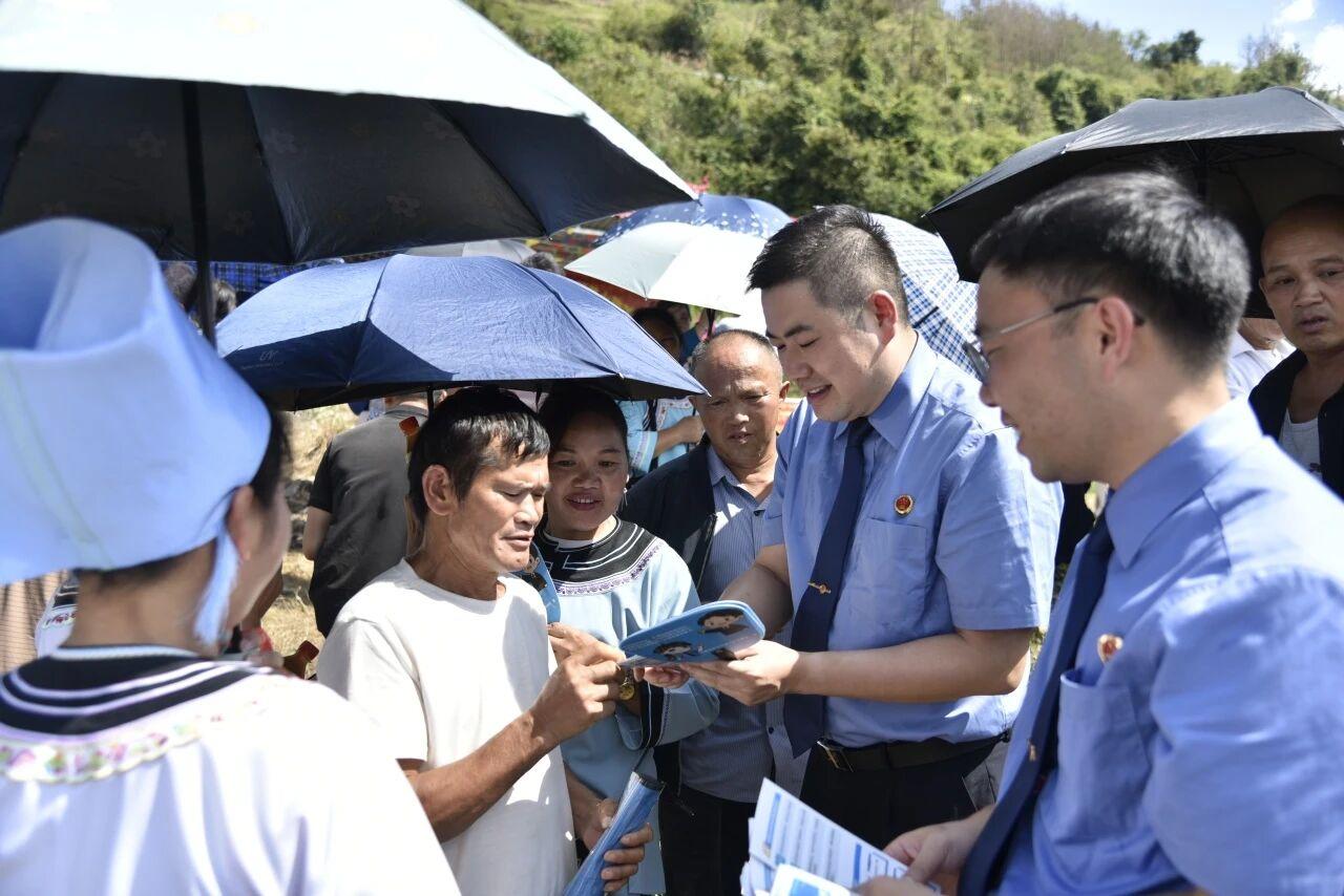 “借端(水語:過端節(jié))要祭祖敬賢,過日子要學(xué)法守法?!彪p語檢察干警們一邊用水語向圍觀群眾問好,一邊用普通話向過往群眾開展“分眾化”普法宣傳。針對(duì)帶孩子的家長,干警重點(diǎn)講解《中華人民共和國未成年人保護(hù)法》《中華人民共和國家庭教育促進(jìn)法》和“六大保護(hù)”知識(shí);面對(duì)老年群體,側(cè)重普及養(yǎng)老詐騙防范和贍養(yǎng)義務(wù)相關(guān)規(guī)定;對(duì)于務(wù)工者關(guān)注的就業(yè)問題,則重點(diǎn)拆解“高薪詐騙”套路,結(jié)合支持起訴職能進(jìn)行宣傳,讓群眾懂得如何通過法律途徑維護(hù)自身合法權(quán)益。據(jù)統(tǒng)計(jì),活動(dòng)當(dāng)天共發(fā)放各類宣傳資料300余份,接受法律咨詢10余人次。