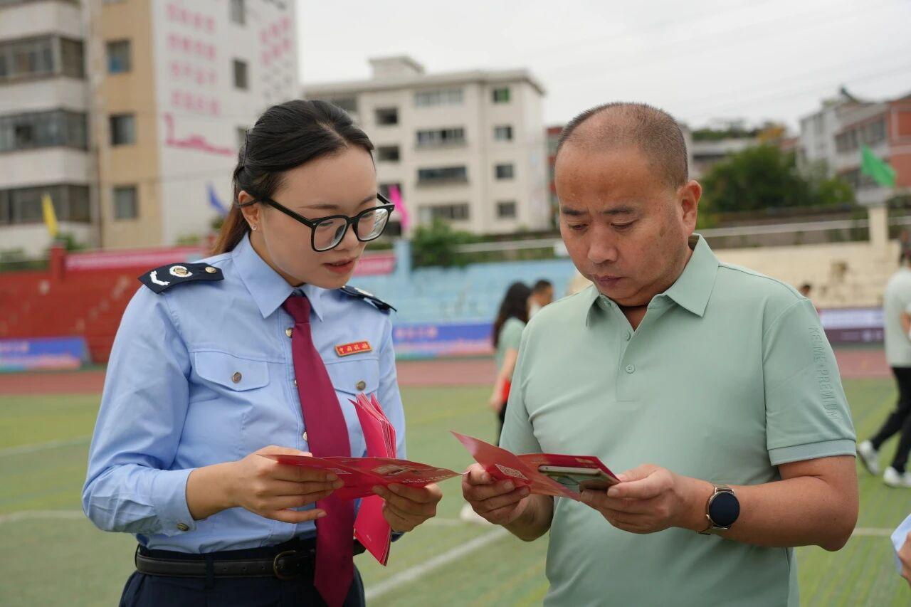 活動現(xiàn)場,普定縣稅務局以運動場為“流動宣傳陣地”,組建游走式“稅費政策咨詢服務隊”,為現(xiàn)場群眾和參賽人員送上定制的“稅法能量包”。禮包內(nèi)不僅收錄了個稅專項附加扣除操作指南、靈活就業(yè)人員稅收優(yōu)惠政策等實用資料,更附上了通俗易懂的政策解讀小貼士,既為賽事增添“稅務溫度”,也用專業(yè)服務為運動員加油鼓勁。