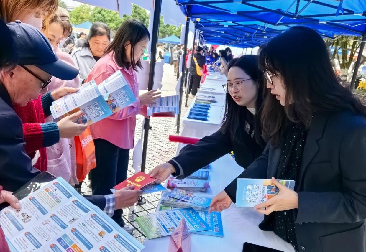 圖為觀山湖區(qū)司法局工作人員向群眾發(fā)放宣傳折頁(yè)。