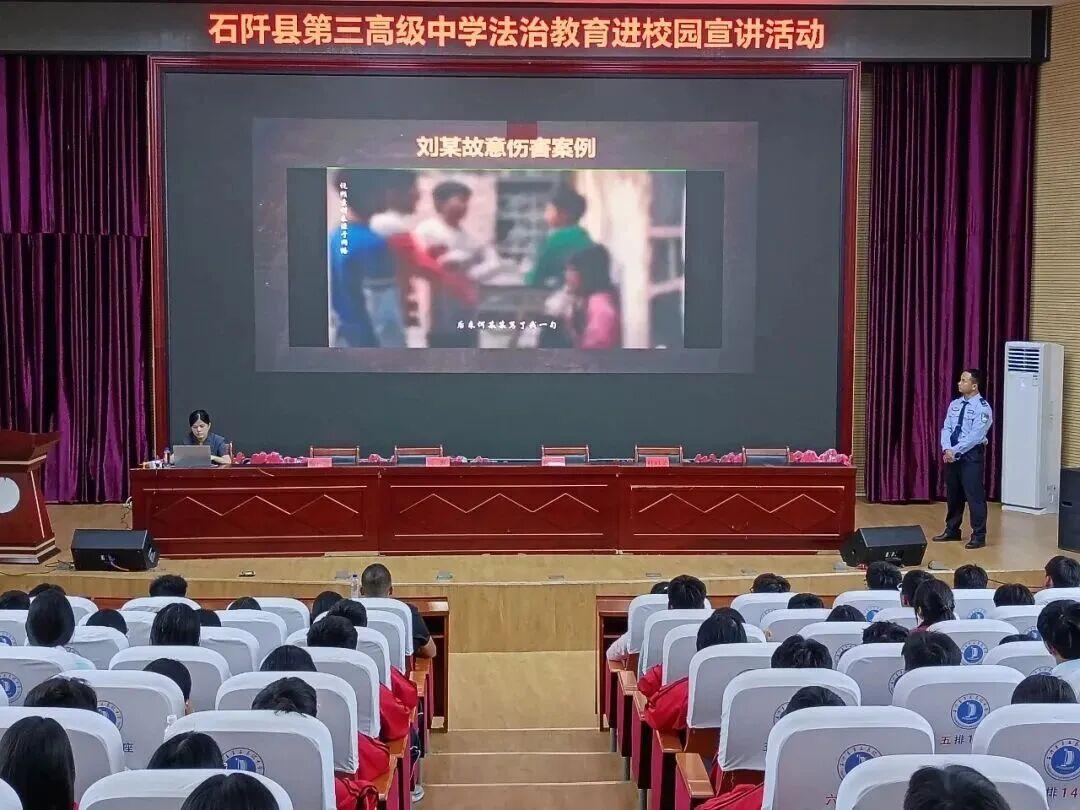 在中學課堂,貴州省未管所受邀聯(lián)合貴州省銅仁市石阡縣法院啟動“未愛護航法伴青春”系列專項活動,民警與法院工作人員組成的宣講團隊先后走進石阡縣5所中學,聚焦青少年犯罪預防與自我保護兩大核心,通過“案例剖析+法律解讀+互動問答”的形式深入淺出講解相關(guān)知識,讓師生在沉浸式課堂中樹立法治意識;白云監(jiān)獄民警李燕瓊則在貴陽市第三中學以“年齡不是護身符”為主題,通過“網(wǎng)絡犯罪”“毒品宣教”“互動問答”三個模塊,并借助“警察小熊”調(diào)動現(xiàn)場氛圍,將法治教育與學生生活緊密結(jié)合,有效提升學生法治觀念與自我保護能力。