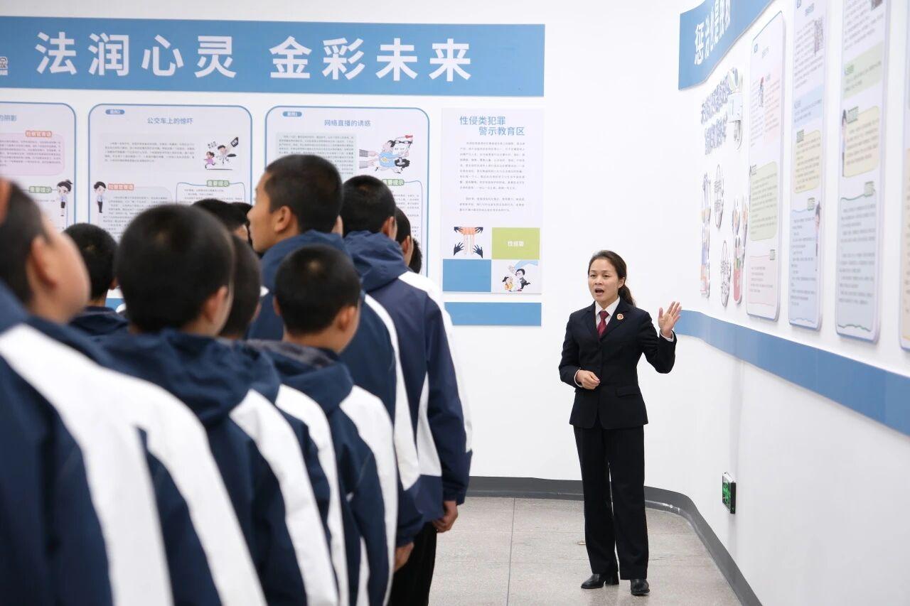 升級(jí)后的基地,通過五大功能區(qū)的協(xié)同聯(lián)動(dòng),為未成年人打造了全方位、沉浸式的法治教育體驗(yàn)場(chǎng)景。法治教育長廊涵蓋法治理念、基礎(chǔ)法律知識(shí),以一個(gè)個(gè)案例警示未成年人,并配備新型毒品仿真模具強(qiáng)化辨識(shí)能力;法治圖書角精選最高檢推薦書目,營造沉浸式閱讀環(huán)境;AI互動(dòng)區(qū)通過法律知識(shí)搶答和虛擬情景決策,實(shí)現(xiàn)從“知道”到“會(huì)用”的跨越;授課區(qū)開展案例研討和角色扮演,推動(dòng)知識(shí)內(nèi)化;談心談話區(qū)提供私密心理疏導(dǎo)空間,在開展個(gè)性化心理疏導(dǎo)的同時(shí),融入法治教育,實(shí)現(xiàn)關(guān)懷與教化的深度融合。