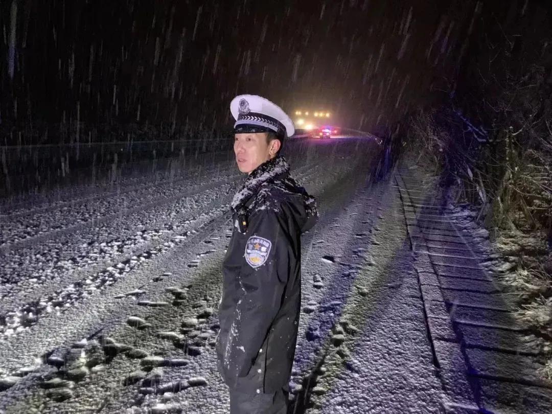 圖為楊兵在寒夜中堅(jiān)守崗位。